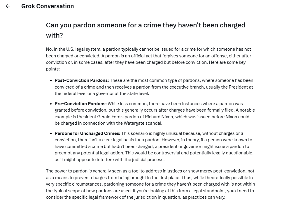 A preemptive blanket pardon would mean the people that Biden gave a preemptive pardon to could go out and commit even more crimes more fraud and even murder or mass murder.