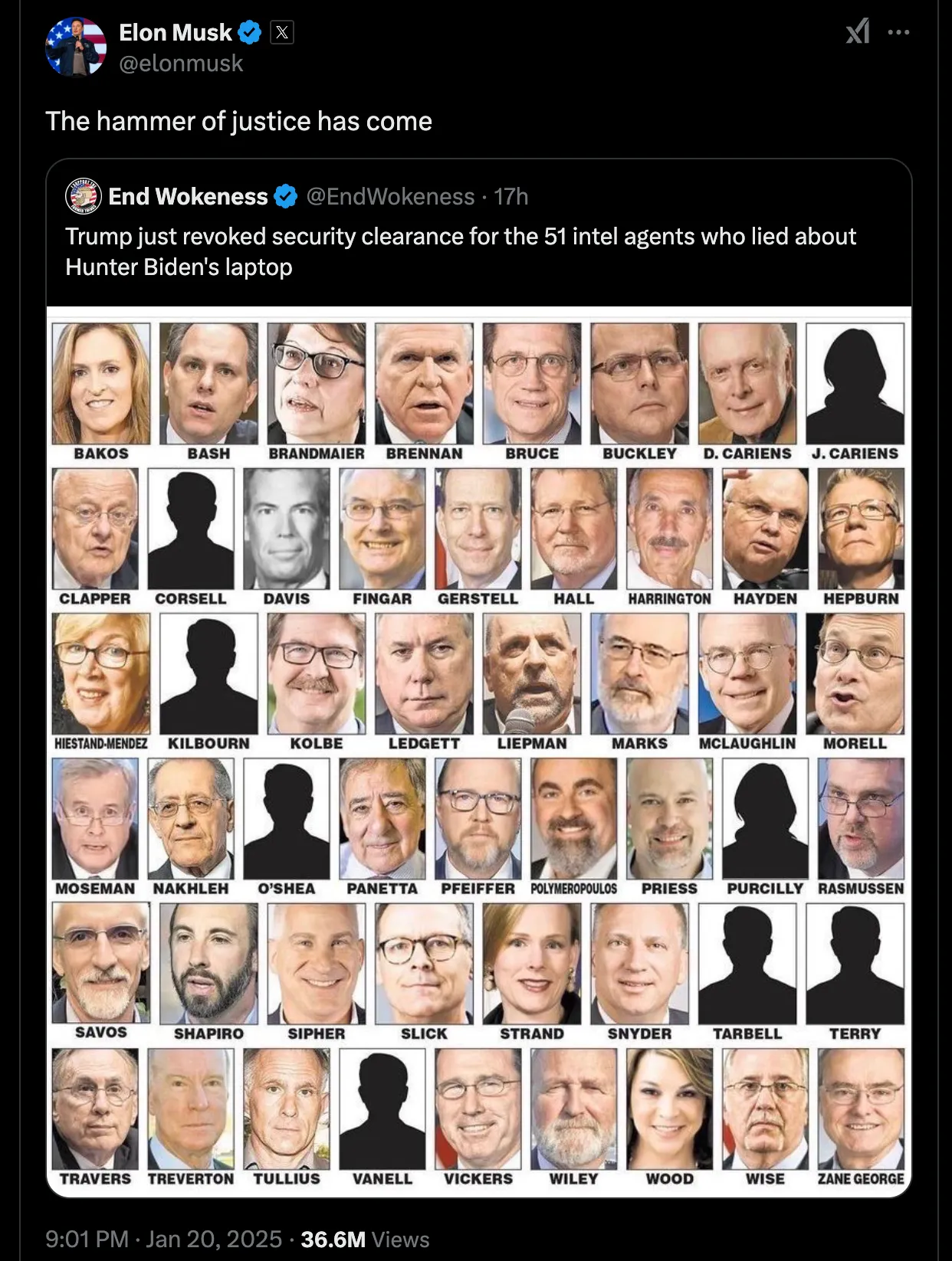 I hope he also revokes Blinken’s clearance, as he was the one who organized the thing, probably in violation of the Hatch Act.