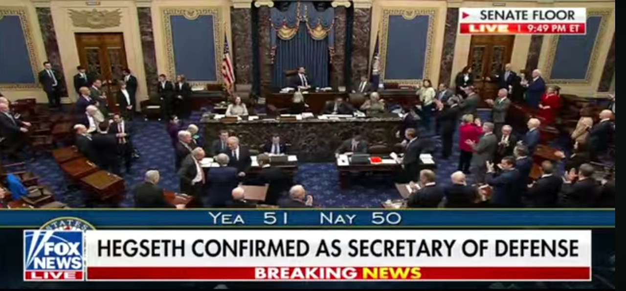President Trump just congratulated Pete Hegseth on his confirmation as Secretary of Defense.