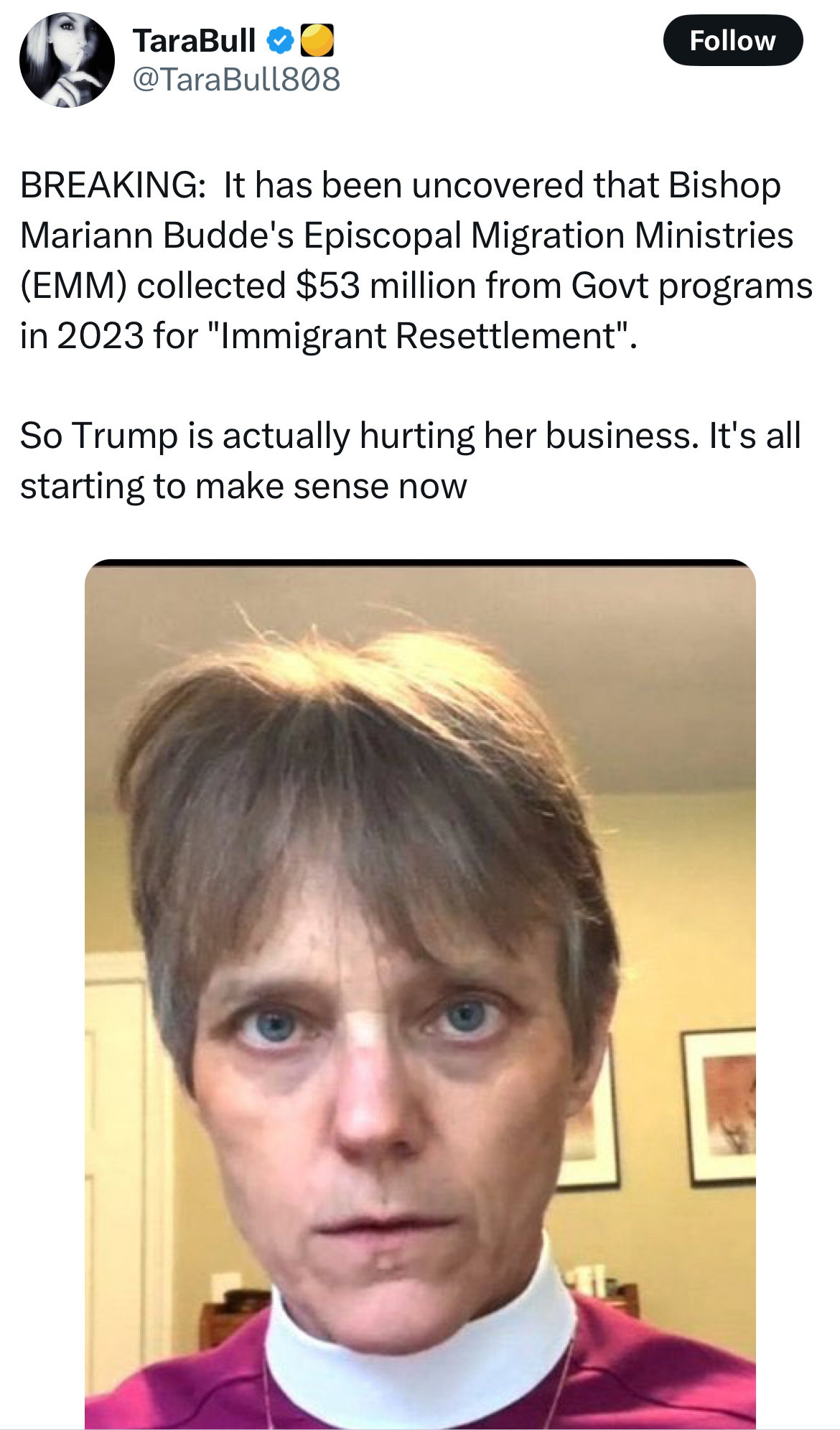 This is the Episcopal (Anglican) “bishopess” that criticized Trump at the religious service in DC.