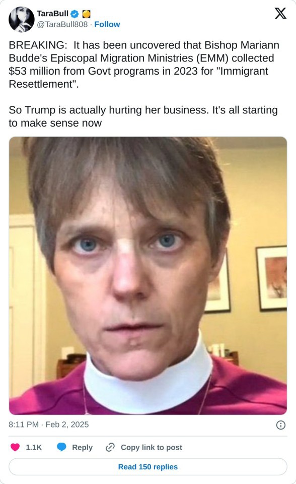 This information in this article is so disturbing. An Episcopalian Bishop lives in a $2 Million mansion. Catholic Bishops were given $500,000,000 to process illegals under the FJB administration and more.