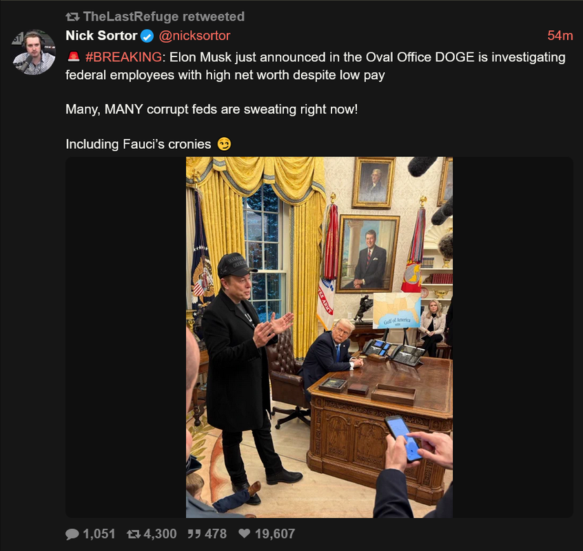 Elon Musk and Trump press conference and Q&A following the signing of executive orders (29 mins). Very interesting.