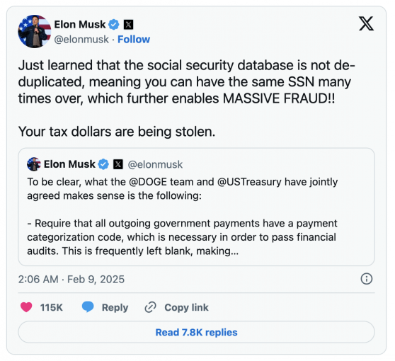 Nobody is worried that Musk is going to stral our SS checks, in fact by stopping payments to 150 y.o.’s, he is strengthening SS for all of us.