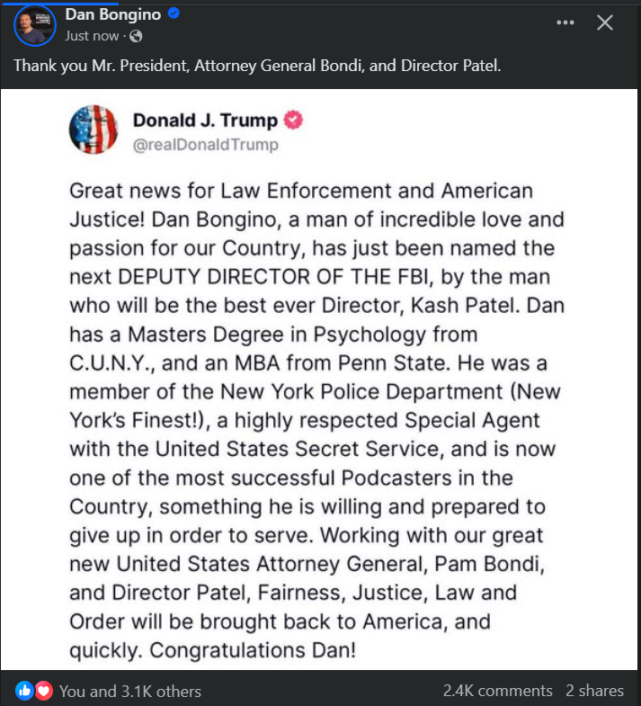 Dan Bongino Deputy FBI Director!!!