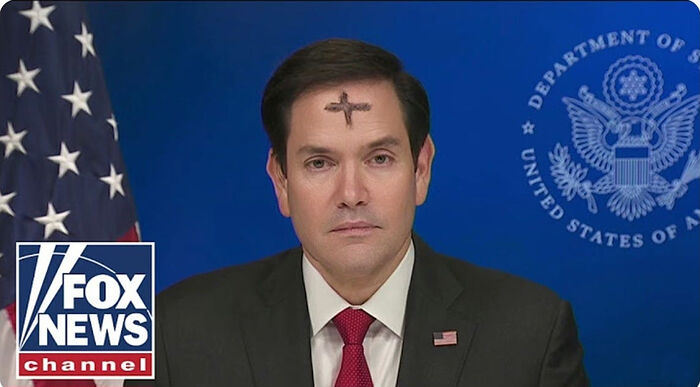 Marco Rubio has appeared on television screen with a cross on his forehead, which Catholics traditionally put on the ashes Wednesday – the beginning of Lent.