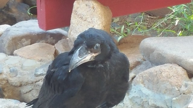 One time one of my crows was damaged by a passing car — probably by someone who wanted to kill it on purpose (my brother-in-law hates crows and does exactly that) — and very damaged and in terrible trouble he walked into our yard and walked up right next to me to let me know he was in big trouble.