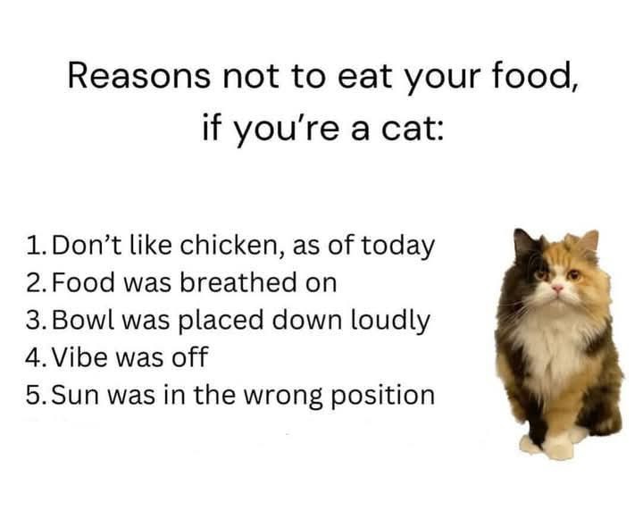 Kitties do enjoy keeping you on your toes regarding food choices!