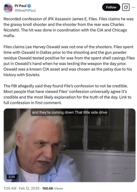 People fail to recognize what’s behind the interest in JFK files, 9/11, Epstein files, etc. Most of us have a good idea of the truth involved in each and have for some time. Our interest in this transparency so that others may know the truth and realize much of what they know about our nation and the world is a lie. And only then will the people demand accountability of those who have lied to us. They are the same people who have been stealing from us. The same people who have enslaved us. So until people understand why the release of these and other files are so important, nothing will change.