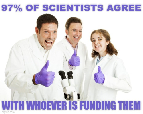 Pretty much the way “science” works nowadays is you could only come to conclusions or “facts” in your research in favor of your sponsor. Or risk being one of those researchers getting de-funded and as a next project research the waiting queues at the local foodbank.