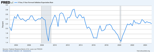 Moreover, there is NO evidence that inflation expectations are on the rise. The five year forward inflation expectations is THE gold standard for measuring inflation expectations.
