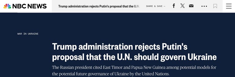 NBC: An unnamed WH National Security spokesperson rejected Putin’s proposal for temporary external governance of Ukraine to sign permanent peace agreement.