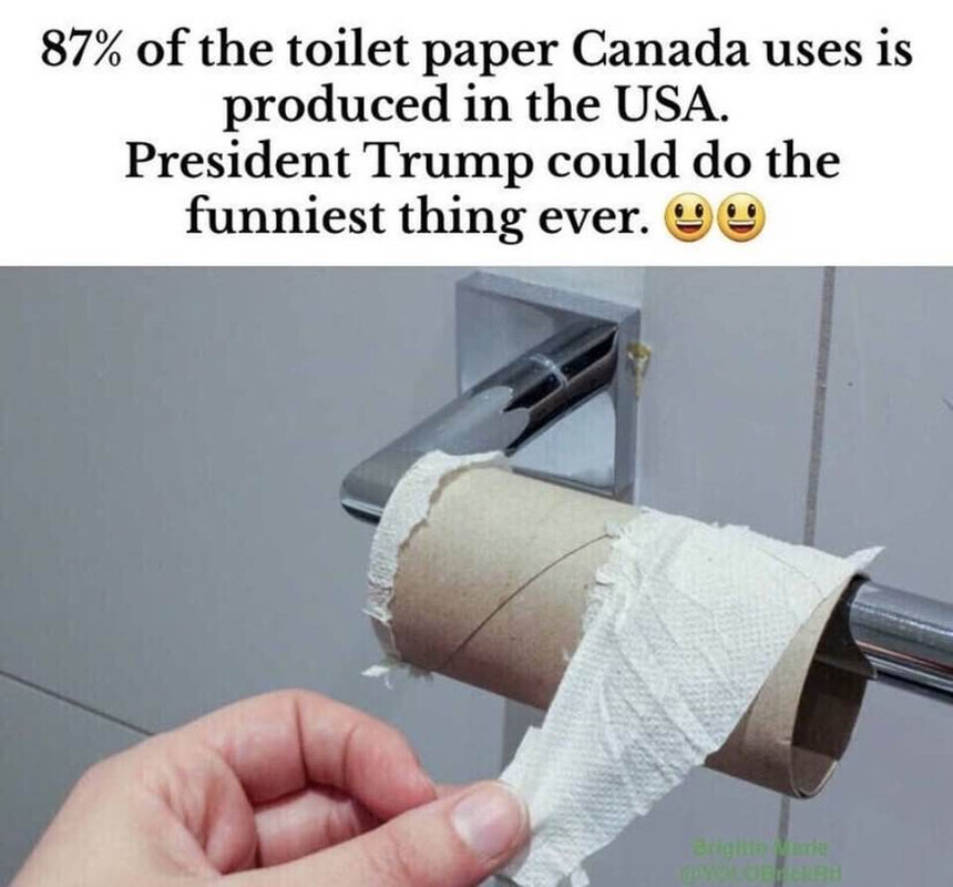 Canada currently gets 87% of their toilet paper from the US. What would Canadians do if we turned off that off?