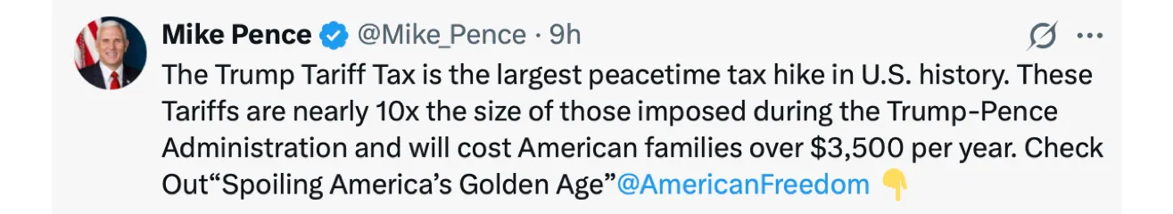 Pence is lying. You won’t pay $3,500 for Trump’s tariff policy. Walmart won’t. China will. And that’s why they’re howling like scalded coyotes.