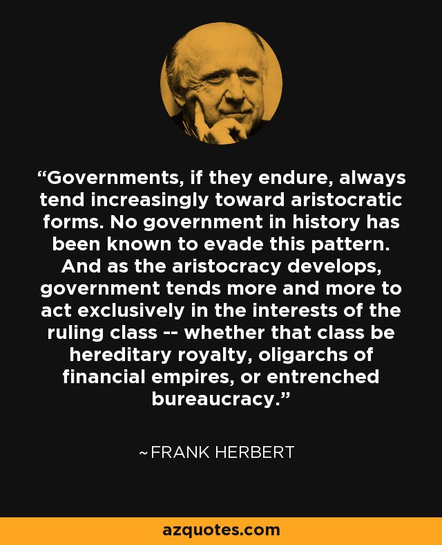 Frank Herbert might have been paraphrasing “The Iron Law of Oligarchies” (Robert Michels, 1911)