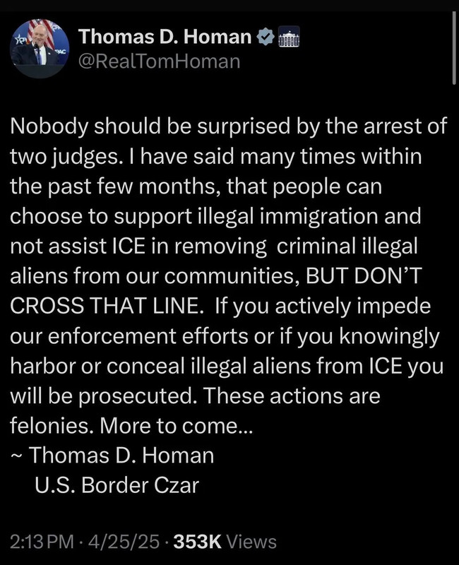 Complaints in these comments — arresting judges is no small thing. If either one is convicted of aiding/abetting/harboring, it will bring every case into question. This the real question going forward, how successful will the AG/FBI in getting convictions.