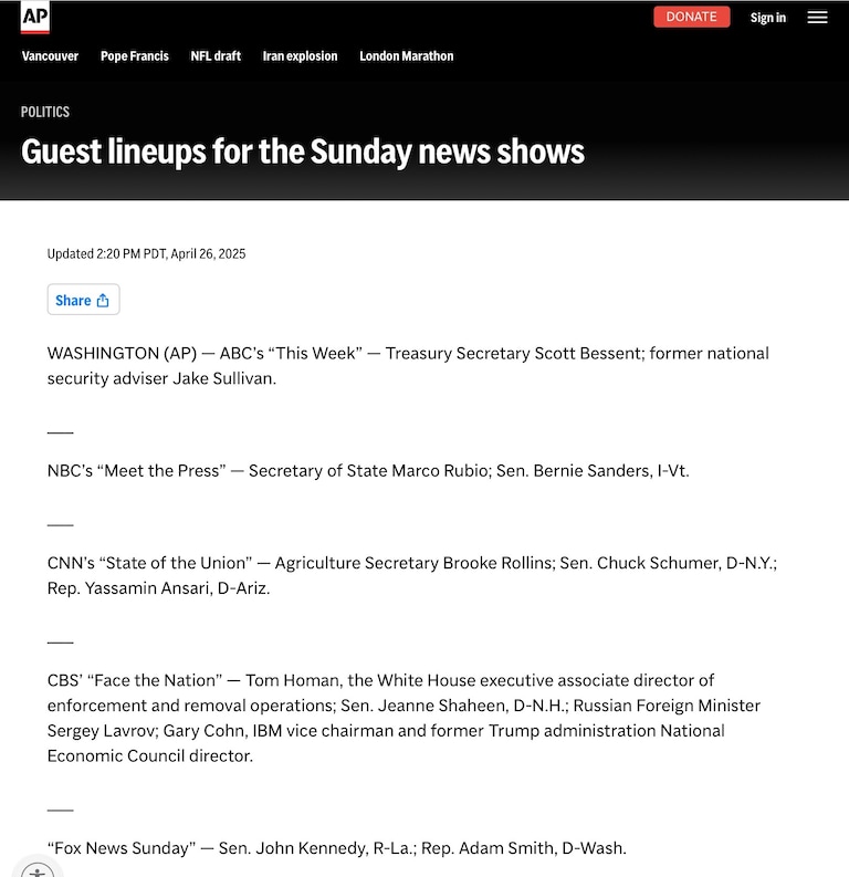 Choose your MSM Sunday morning mind poison on Trump 2.0 first 100 days: