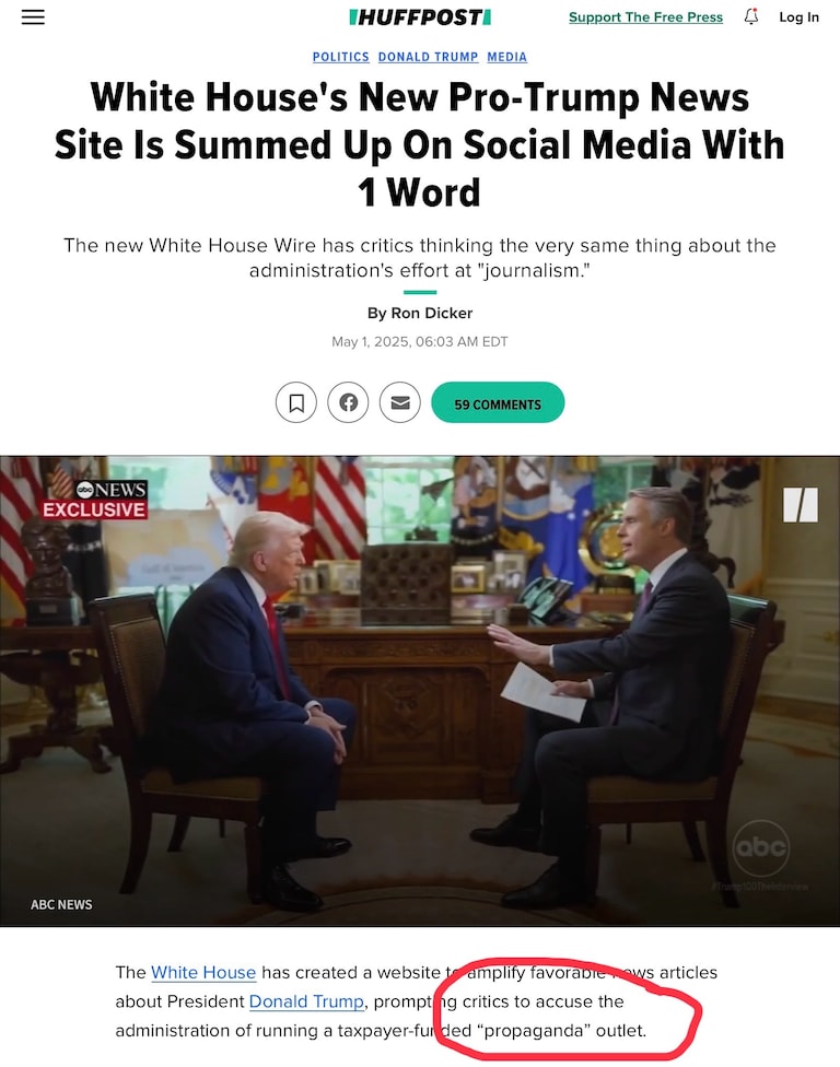 HuffPost article link: https://www.huffpost.com/entry/white-house-wire-propaganda-trump_n_68133039e4b0a346f102178f