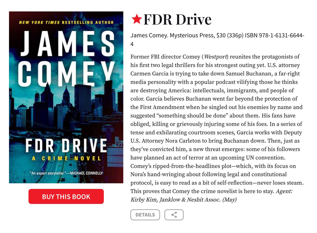 Wow! Why is Comey so STUPID, then??? Maybe he wants to be in the news to generate BOOK SALES. His new fictional crime novel will be released on May 20th. Here’s the link: