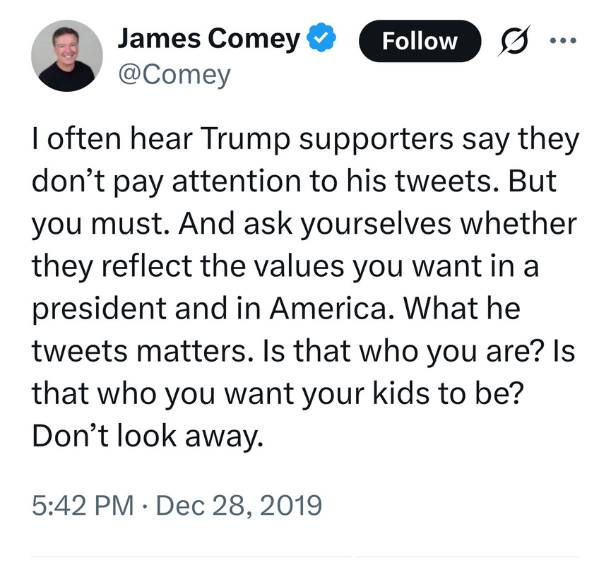 Maybe Comey should get the Mike Lindell treatment? Seize Comey’s cellphone to look for other activities related to this threat and for leaks of governmnet secrets.