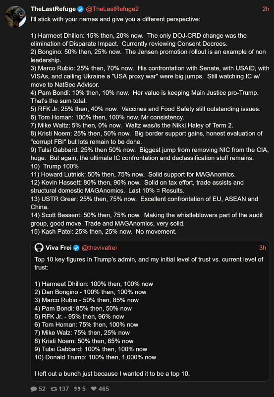 Be it the freedom clowns and spending, the immigration hawks with H1B visas, the peace doves with timing, the cultural warriors with total bans of DEI/CRT, the neocons with war fighting, or the swamp dwellers with draining the swamp.