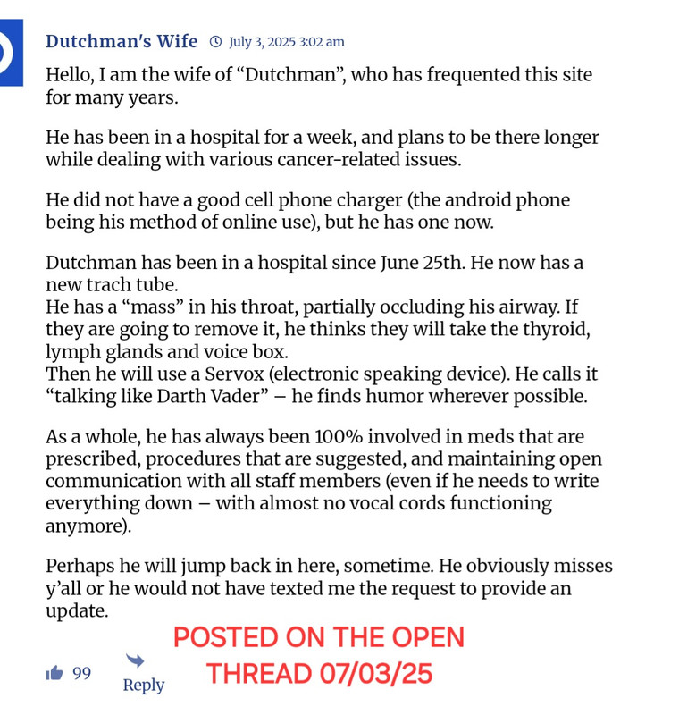 ♦ for guidance for his medical team as they address various cancer-related issues & for his continued recovery through each of these issues as they are addressed via surgery or other means (7/3/25)