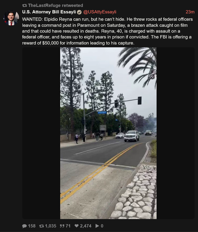 1/ 🔍 The Deputy FBI Director is asking the public for help in identifying a man throwing rocks at vehicles during federal operations. This is not just vandalism; it’s a direct attack on law enforcement. Info below 👇 pic.twitter.com/AHYc9ucjUg— Dr. CZ (@AngelMD1103) June 7, 2025