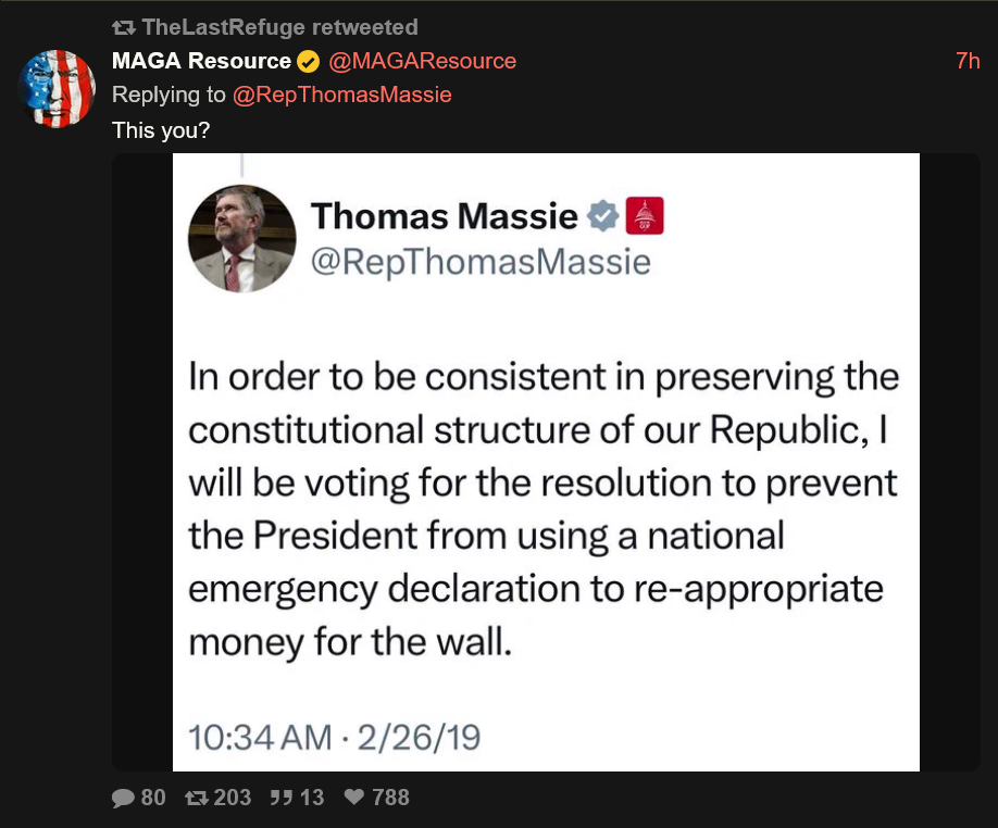 Massie and his ilk only care about the debt ceiling when they can’t grift off the spending.