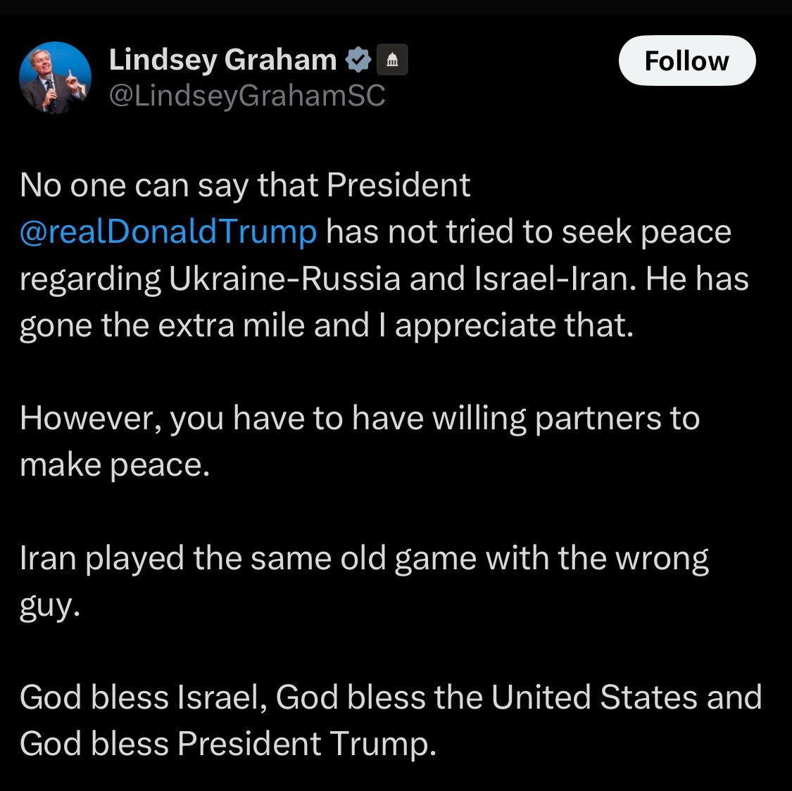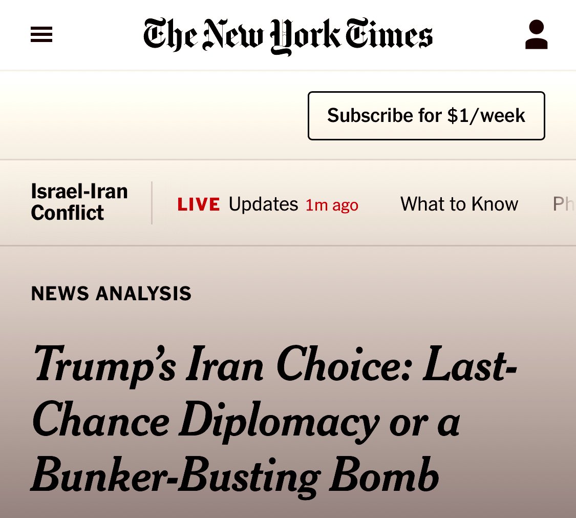 PDJT has lied/deceived in my opinion. Navy & intell aiding Israel blatantly with shooting down of Iran missiles & drones in Iraq, Syria, Jordan and from the Destroyers in the Med. we (USA) will join Israel as soon as Iran looks even close to hurting Israel. Double standards and deceit in Israel and Ukraine policy. I’m very disappointed in the man I voted for in regards to Ukraine, Syria (ISIS-Al-queda is great????) and now Iran.. Ultimatums are not negotiations. PDJT gave Iran nothing but demands that were meant to be unacceptable so PDJT could say “I tried so here is our fury !!” .. Blood and treasure again for a foreign nation who attacked with premeditation in the midst of negotiations without provocation. 8 months planning and again PDJT claims innocence just like Ukraine. yeah – I did’nt know,, we are’nt involved.. the evidence shows otherwise again..