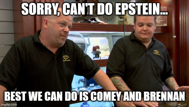 So, Comey and Brennan are gonna get the squeeze, and may or may not survive. In exchange, the darkest secrets of the Deep State are tossed with Epstein and the status quo continues.