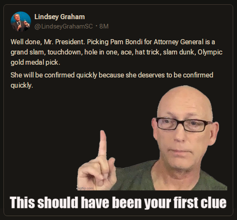Agree Maine- doesn’t mean Bondi isn’t a self-serving POS, or that kids were not diddled by Congress critters…it just means, reality.