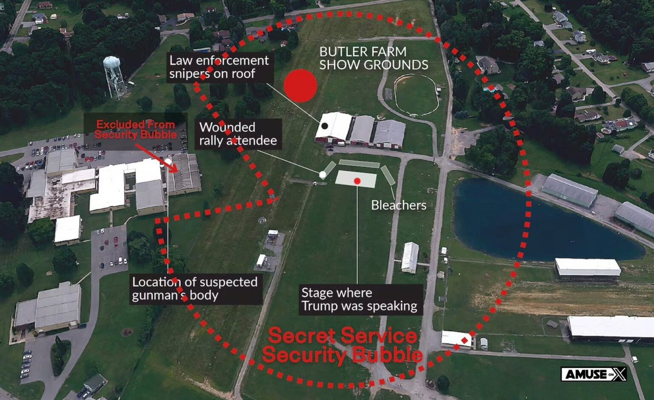 — Secret Service didn’t ensure a SS drone in the air, on which screen someone would have observed “Hey, who’s that guy on the roof? In a prone shooting position?”