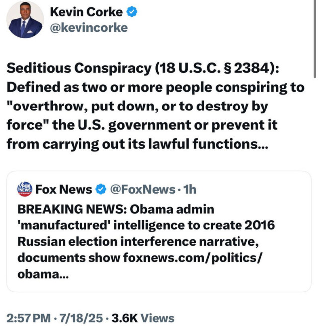 In her opinion as expressed, there is enough direct evidence now available to the Dept of Justice to begin criminal indictments against all of the participants. DNI Gabbard is going to face the full fury of the assembled intelligence state.