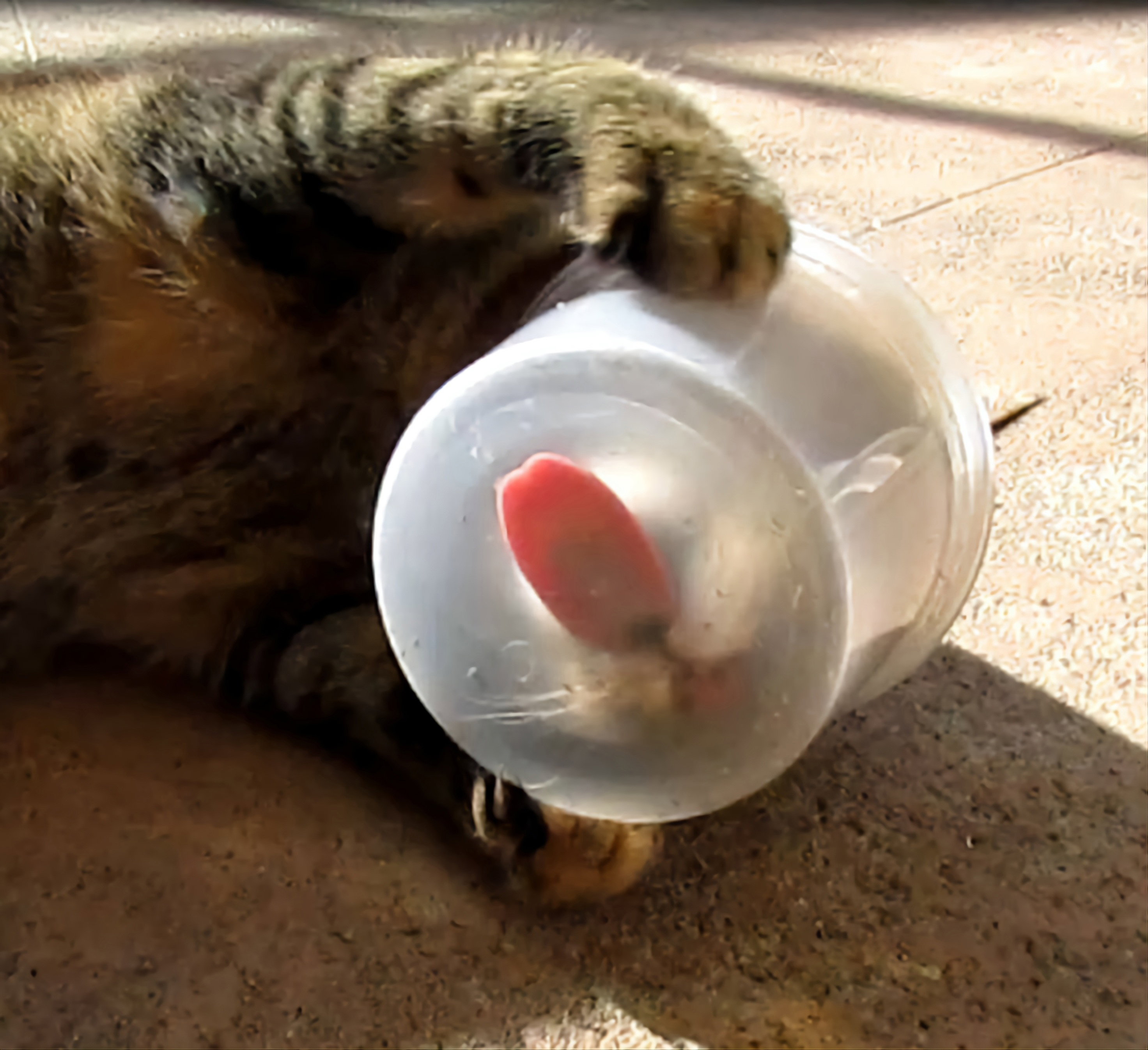 Wheezy has decided she likes ice. So I bring her a bowl of ice water each morning- check out the tongue!