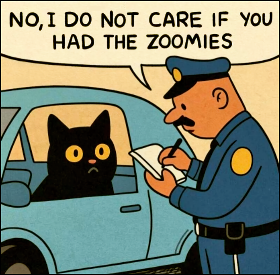 When your cat trips you and later rubs against you to make it look like it was not a pre-planned murder attempt….