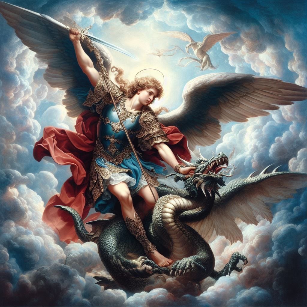 O Prince of the heavenly hosts, by the power of God, thrust into hell Satan, and all the evil spirits, who prowl about the world seeking the ruin of souls.