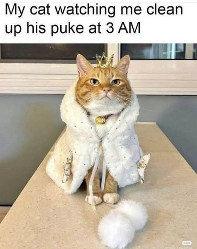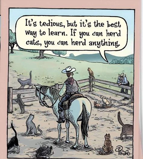 Good morning Betsy. Thank you for providing, again, the best caturday images. Cat-erpillar gave me many smiles, chicken for the birthday, all the kittens including the ‘cheetos”, Queen while you clean up puke were my favorites today. Feel quite sorry for the cowboy trying to herd the cats. Happen to have that card in my stash of cards.