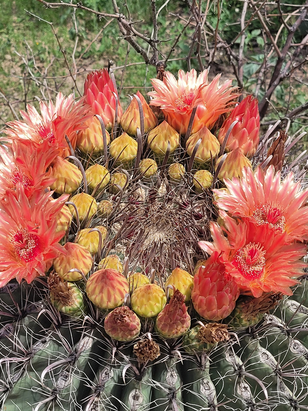 Always something blooming. This is a fish hook barrel cactus. Nice to look at, but don’t touch! ❤️