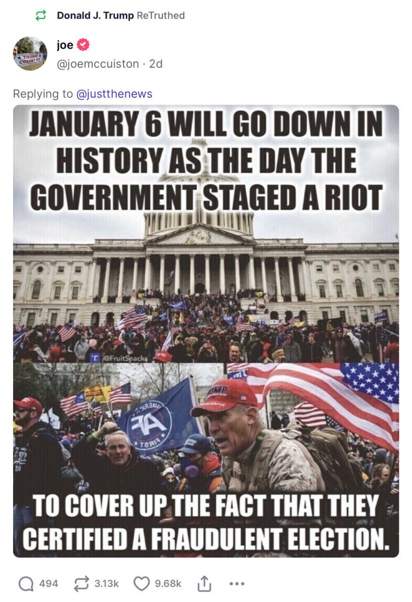 “Perhaps even more concise is this tweet on Saturday from ex-FBI whistleblower Phil Kennedy, “J6 was the largest entrapment case in human history. It was orchestrated by Nancy Pelosi and her demonic handlers.””