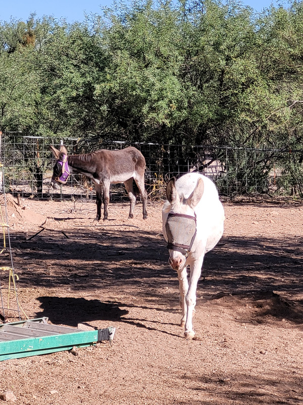 We set out a bunch of low sugar/low starch treats for Louisa and Olive each day – a virtual burro egg hunt. It gets them moving and we enjoy watching.