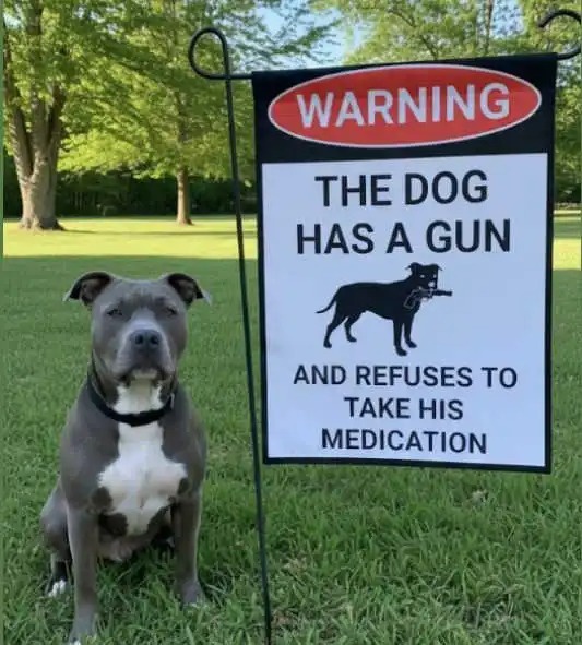 Love all your Cusday images. You never disappoint. Especially like the dog with the soldier and the dog with the sign about the gun and off his medication, LOL.