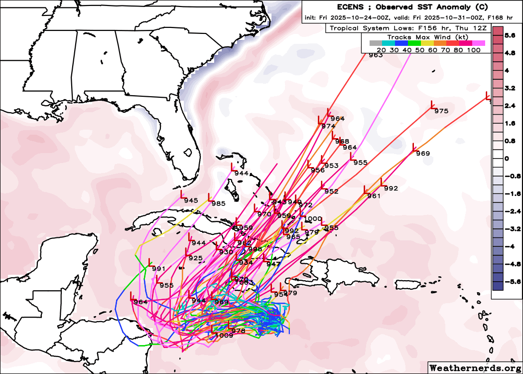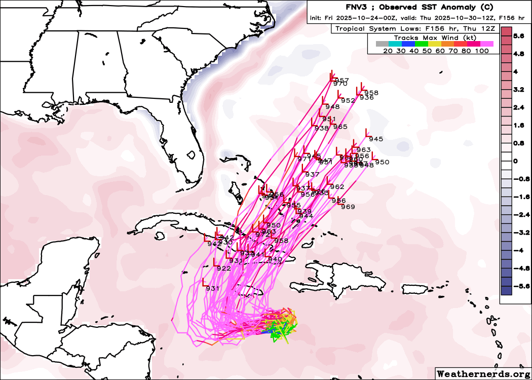 Good news for Jamaica. Most models now show Melissa beginning her turn west earlier so that the storm will not skirt the southern coast as it was forecast to do before.