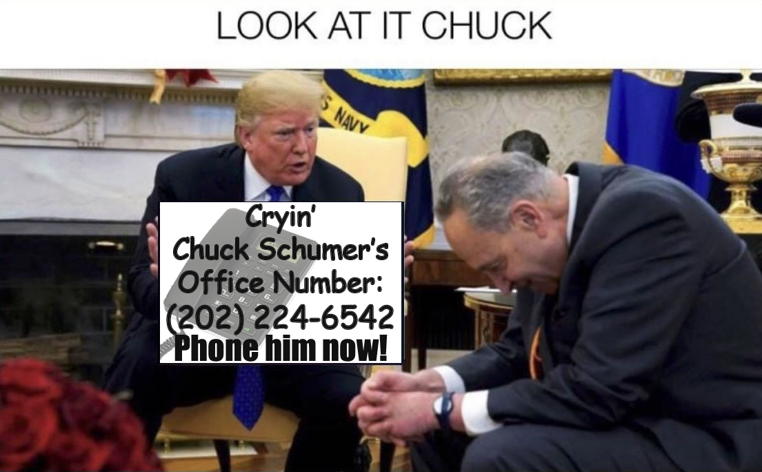 Make sure to ask for Cryin’ Chuck Schumer when you do call!