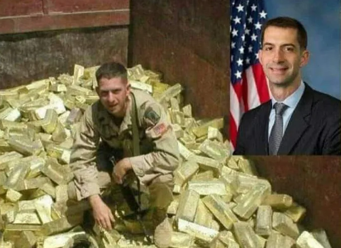 Find the picture of him in the shipping container in IRAQ with all of the GOLD bars………….