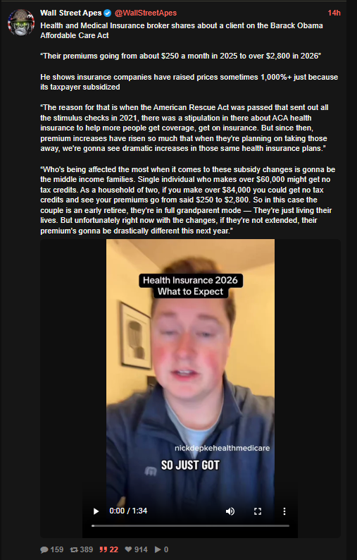 Villainize the opposition, see the Epstein Files whatever that is, scare people that we are going to lose, healthcare, income, etc. and everyone who believes in the USA is a homophobe, anti-immigrant, jingoist, racist, war mongers…we all know the rattle, but this time the ACA is in the target.