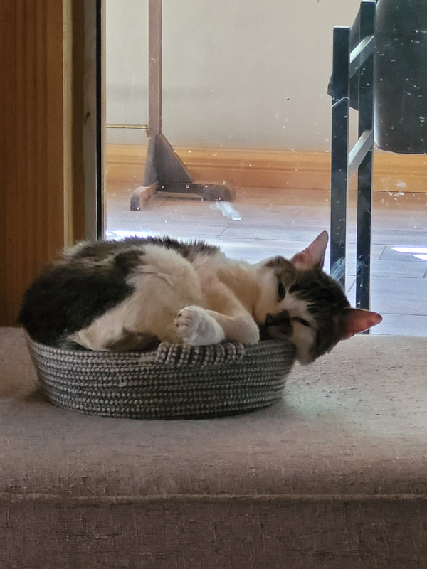 Rosebud has turned out to be featured kitty today! This is her favorite activity. She is 17 🤞 and holding her own. ❤️