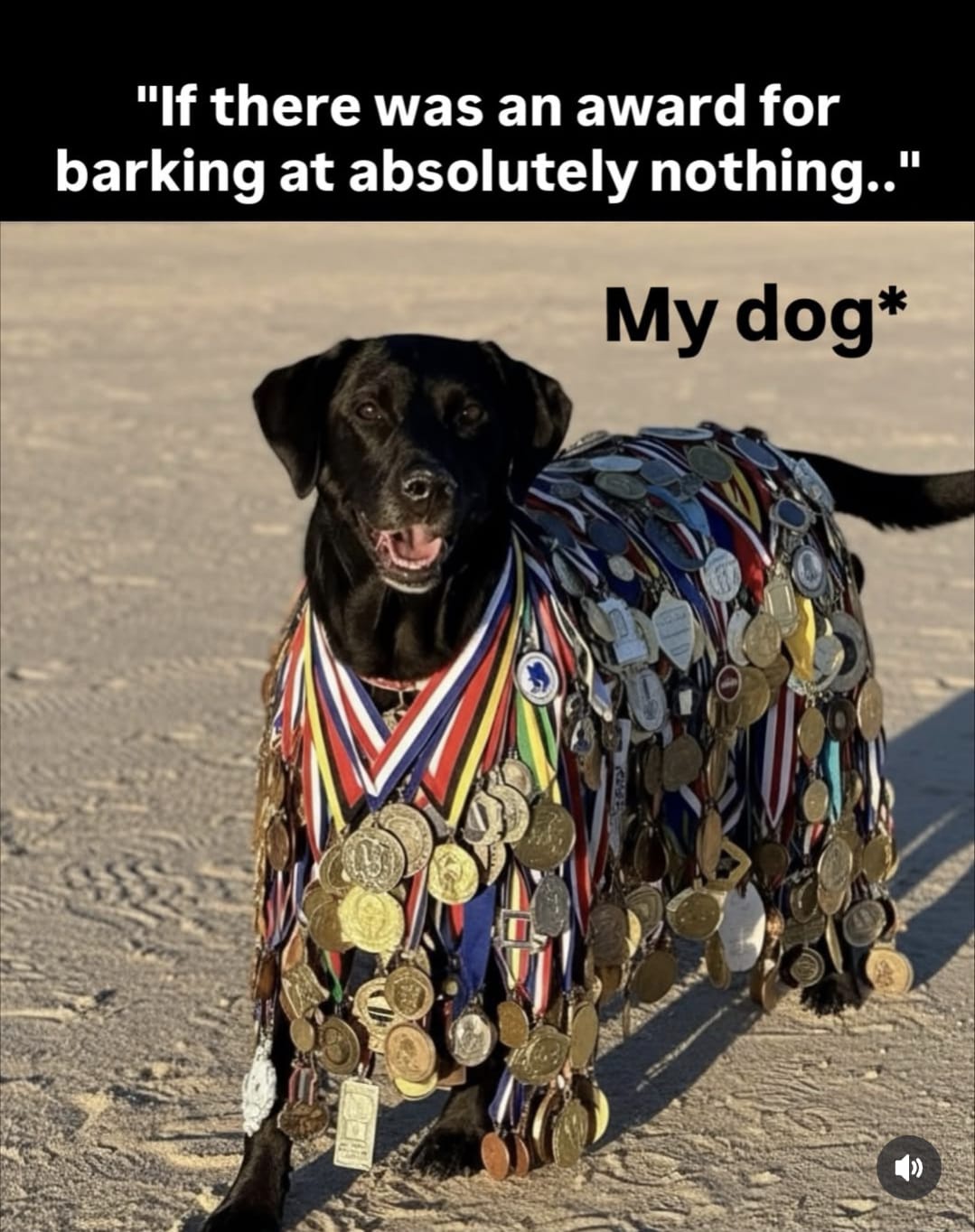 My Beau would have all those medals as well. He will bark but I do not see anything he should be barking at, but he evidently does.