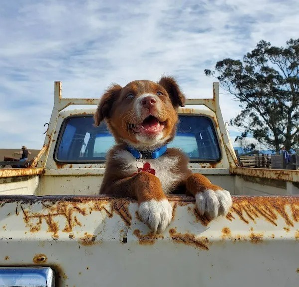 From the look of those scratches and rust – this is far from the first lucky dog to inhabit that truck bed!