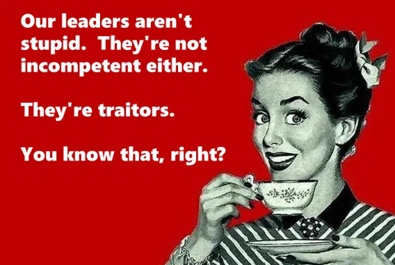 Sorry. On the Dem side especially, they are completely incompetent. Their IQ in some cases must be lower than normal based on what they say, how they rationalize issues and what they do. They might be traitors too in some cases but they are definitely highly incompetent. I still can’t figure out how they actually have followers and get elected.