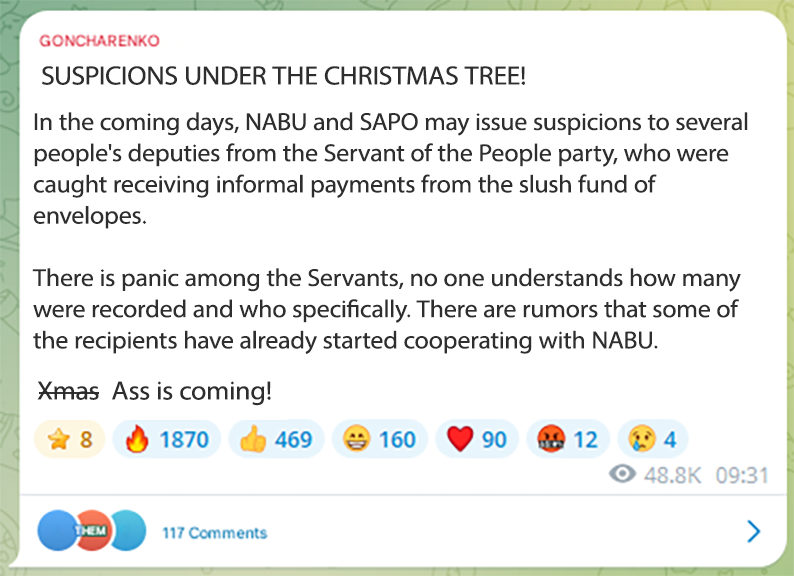 The head of the committee is MP Yuriy Kysel, who had previously been wiretapped for several years by NABU and SAP.
