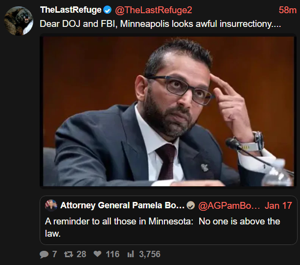 The best thing that can happen is if Bondi and the DOJ for once get themselves in gear and move really fast with their investigation of Timmy and crew and put them all under arrest. But I’m not holding my breath for that to happen.
